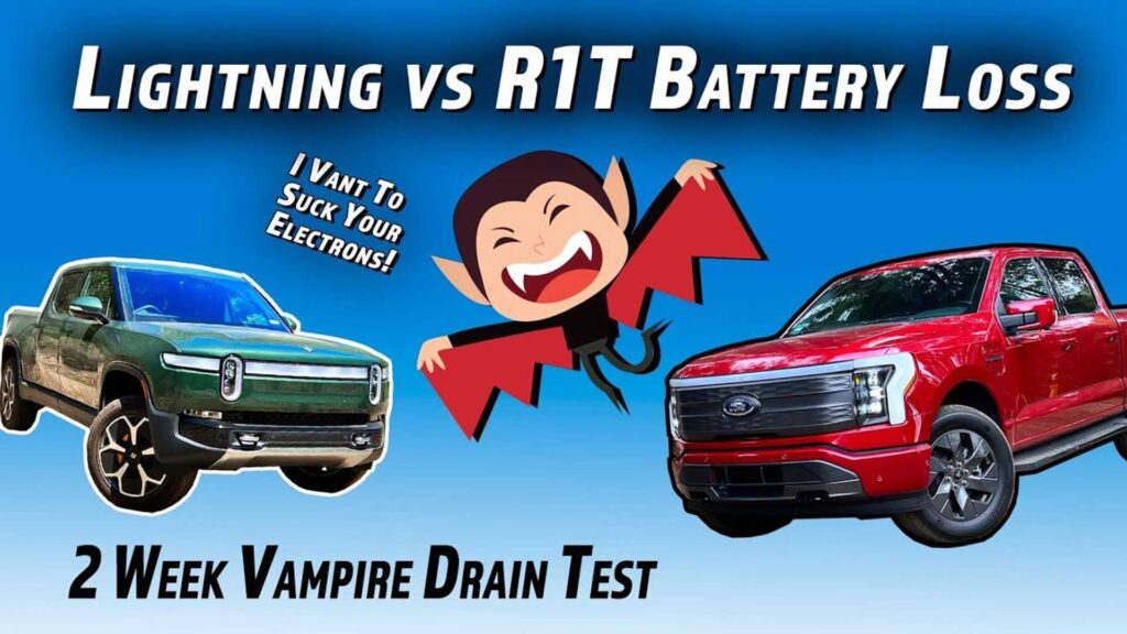 Alex provides some more details about vampire drain and then shares information about his tests. He parked the F-150 Lightning and the Rivian R1T each for 10 days to learn just how much energy these electric pickup trucks consume while not in use and not plugged in. He charged them to 100 percent and he turned off the R1T camera-based security system to save power.