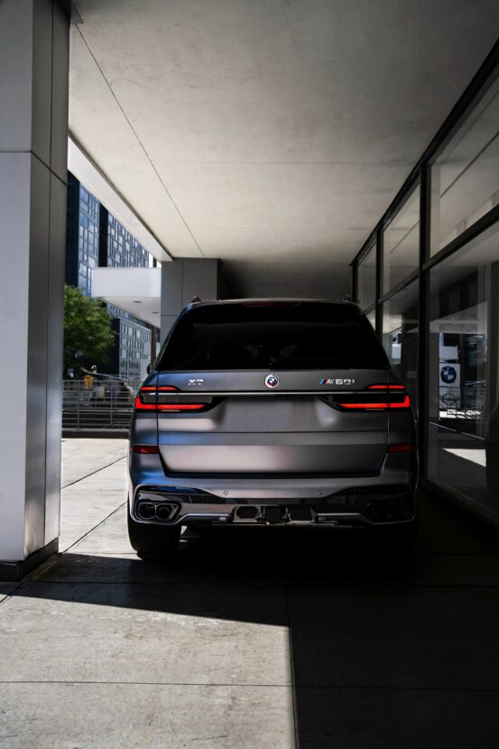 First test drives of the 2023 BMW X7 Facelift are just around the corner, so it comes as no surprise that first units are now arriving at American dealers. These new photos from BMW of Manhattan showroom in New York City show the new top model of the X7 family – M60i. Not only it comes with an M-built engine, but the BMW X7 M60i is also painted in Frozen Pure Grey. Furthermore, the matte paint job is paired with the Shadow Line Extended option. This particular option brings high-gloss black elements to the exterior design, for example on the kidney grille and tailpipes.