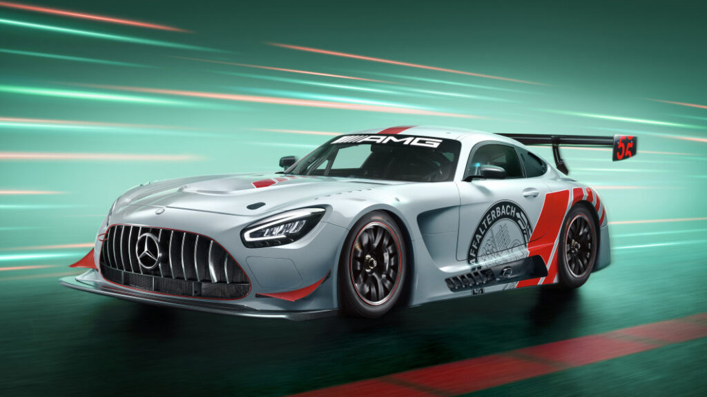 This is the Mercedes-AMG GT3 Edition 55, and it’s a limited-run AMG GT race car that looks like it belonged in the scrum of other limited-production vehicles just revealed at Monterey Car Week. Mercedes is only producing five of these Edition 55 race cars, and there are a number of things that set them apart from a regular AMG GT GT3 car.