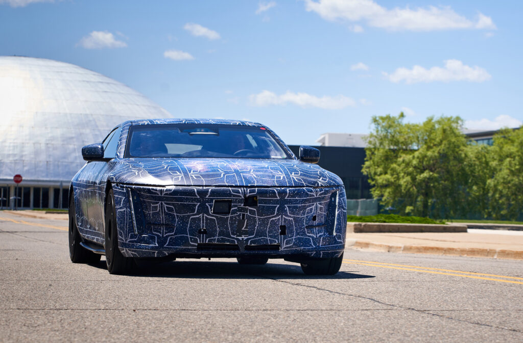The 2025 Cadillac Celestiq is already testing on public roads in prototype form. The early test car looks nearly identical to the near-production concept shown in July, but there are new details such as a charging door and front sensors, including lidar. It appears to be massive, with an impressive presence.
