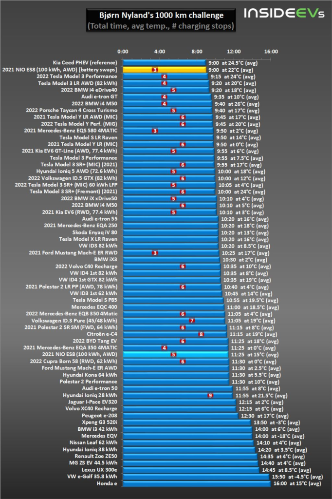 The 1,000 km challenge is a unique test (optimized for time rather than convenience), which expands our empirical knowledge about EVs and gives us glimpses of what is physically possible by an experienced driver in a country with dense DC fast charging/battery swap infrastructure.