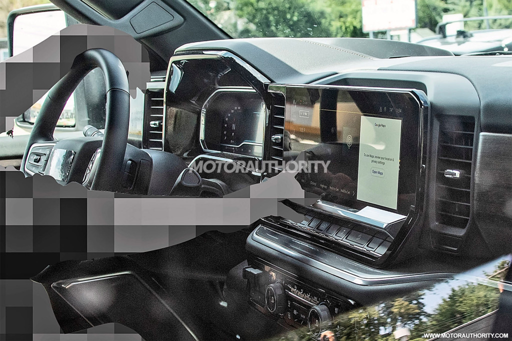 More significant changes will be happening inside, as revealed by our spy photos. There’s a new dashboard whose design is similar to the one in the updated Silverado 1500. The main feature is the new 13.4-inch infotainment screen which is surrounded here by open-pore wood accents, since the prototype is for a High Country variant. The center console and arm rest also look to feature new designs.