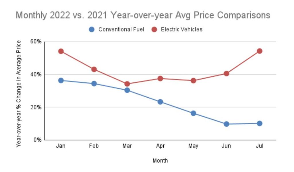 iSeeCars notes that prices as a whole are finally beginning to level off in the second half of 2022, but electric car prices are still rising. The publication shares that in July 2022, used EVs cost an average of 54.3 percent more than they did a year ago. Meanwhile, used gas-powered cars are still up about 10 percent.