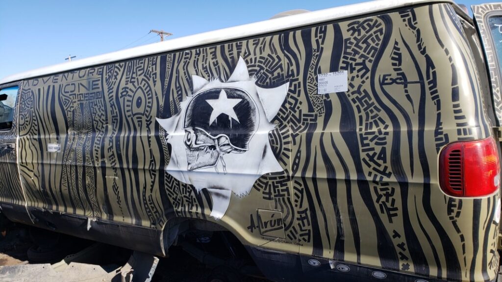 It turns out that this van was customized by Antonio de Irún, a multidisciplinary artist in Boulder, Colorado. He refers to this Dodge as an “Adventure Reform Van” and there’s a page documenting its construction on the website of a Florida custom-van company.