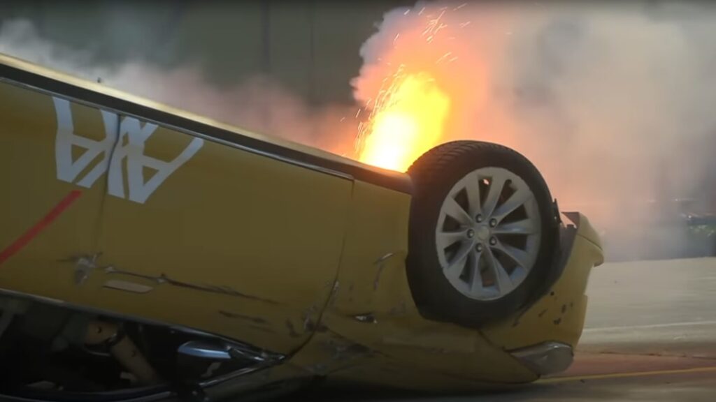 International insurance firm Axa has copped to faking a Tesla battery fire in a supposed crash test video posted online in late August. The test, which involved hopping a Tesla Model S over several obstacles designed to flip it onto its roof, was performed with a rolling chassis and the “explosion” and resulting fire at the end were staged using pyrotechnics, NPR reports.