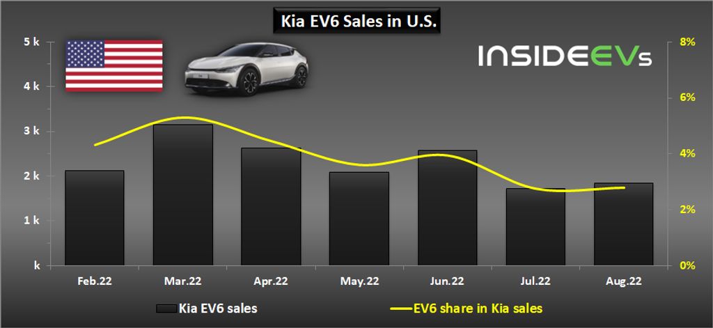 Deliveries of the all-electric Kia EV6 slightly improved in August (compared to July) and amounted to 1,840 (2.8% of the total volume).