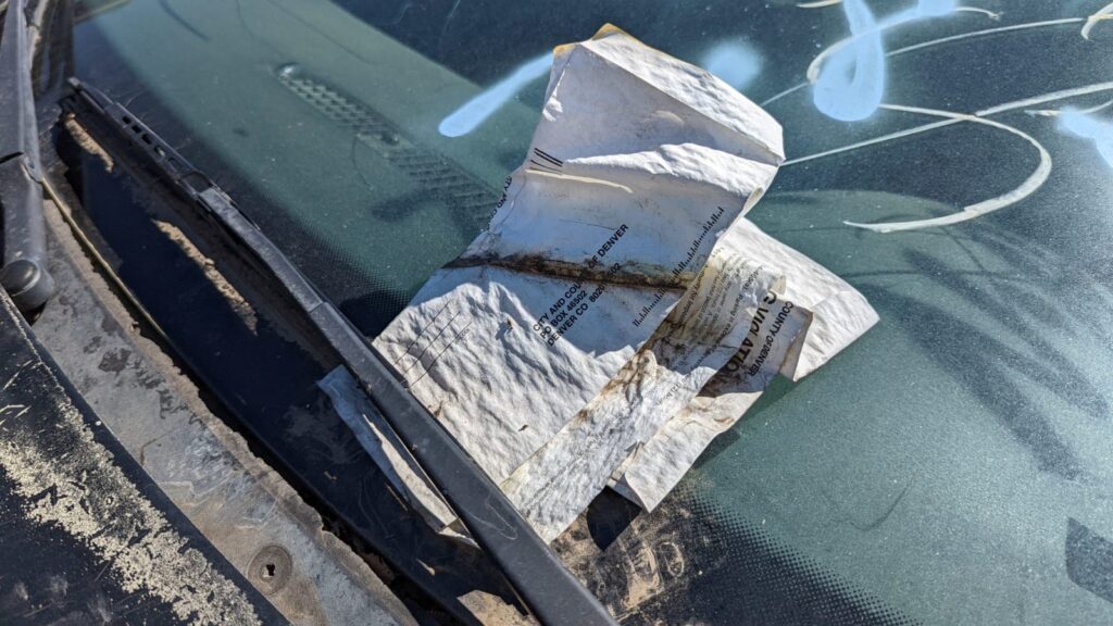 Sometimes it’s hard to tell why a certain vehicle ended up in the knacker’s yard, but there’s no mystery with this one. A thick stack of weathered parking tickets from the City of Denver under the wiper told the story, and examination of the tickets revealed that all of them were issued for failure to move the car for street sweeping… in one of the Mile High City’s snootiest old-money neighborhoods.