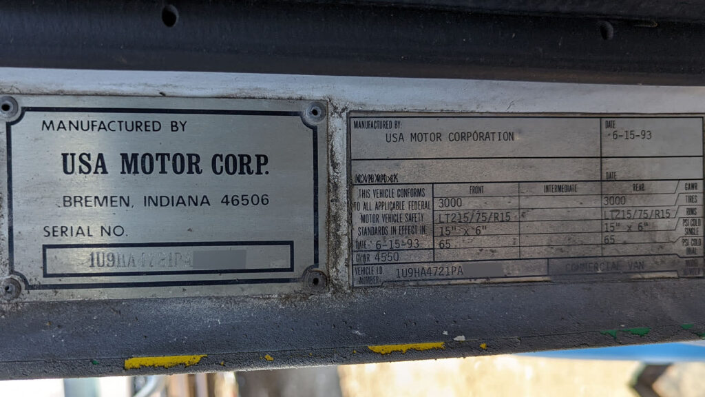 This truck started out as a member of the extended UMC Aeromate family, built in Indiana by the company now known as Utilimaster. I couldn’t find much useful information about this particular model, which seems to have the windshield and nose of one of the many UMC-based RVs instead of the typical long snout of most Aeromates.