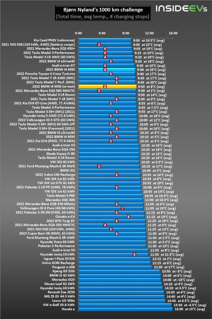 The 1,000 km challenge is a unique test (optimized for time rather than convenience), which expands our empirical knowledge about EVs and gives us glimpses of what is physically possible by an experienced driver in a country with dense DC fast charging infrastructure.