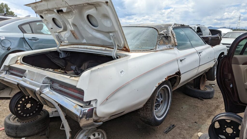 During the mid-to-late 1960s, General Motors made flashy, semi-sporty versions of each of its full-sized B-body cars. Oldsobile had the Delta 88 Royale, for example, while Pontiac offered the Grand Prix. The rakish big Buick of that period was the Wildcat, built through the 1970 model year. Just as the Wildcat shoved aside the Invicta, the Centurion appeared in 1971 to replace the Wildcat. Named after a famous 1956 concept car, production of the Centurion continued just through 1973. Just over 100,000 were built, and here’s one of those rarities in a Colorado self-service boneyard.