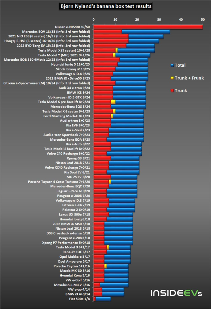 Results for selected cars (number of boxes: trunk+frunk/total after folding the rear seats):