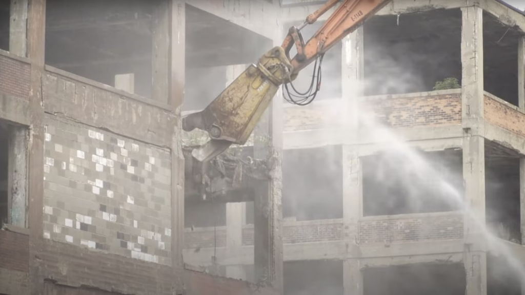 A demolition claw ripped and tugged on decades-old bricks and concrete along the upper floors of the old eastside factory that for generations has been a symbol of urban blight in the Motor City.