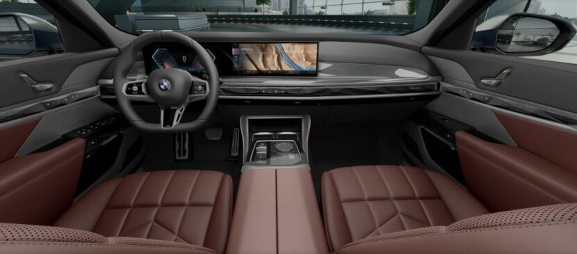 The 7er has quite a few boxes ticked on the options list, including the M Sport Package and the 31.3-inch Theatre Screen serving as the rear entertainment system. Speaking of the interior, the lavish cabin has been configured with the Merino leather upholstery in the Amarone color combined with a carbon fiber trim for the dashboard and center console. You’ll also notice the flat-bottomed steering wheel with an M logo on the lower spoke.