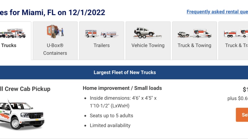 We don’t know how many U-Haul locations offer Maverick rentals, but the forum posts all appear to be from Florida. The truck is listed on some U-Haul location pages and not others, including some in the areas forum users reported as having seen them.