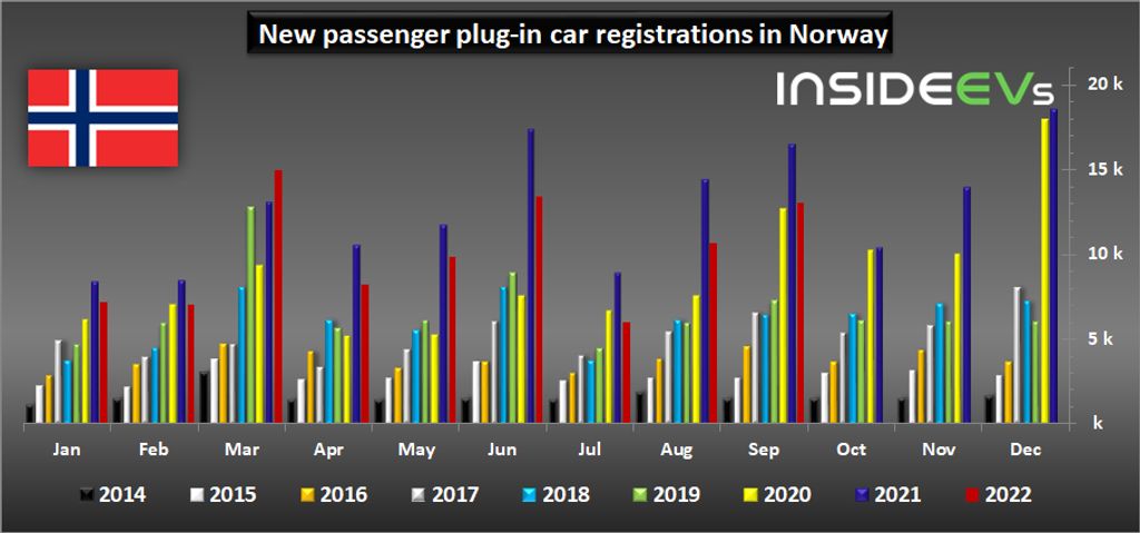 Last month, 13,053 new passenger plug-in electric cars were registered, which is 21% less than a year ago. The market share decreased to 89.1% (from the record high of 91.5% a year ago).
