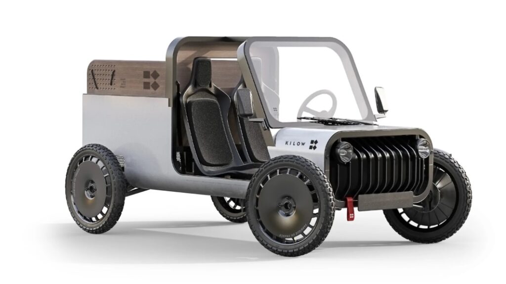 Looking at this thing, it’s easy to be fooled by its dinky appearance, but videos of the car tell a different story. It seems like an absolute riot, especially in the woods, where it can be seen ripping trails alongside a mountain biker. It rides on narrow 18-inch wheels with two electric motors positioned nearby. Wide open, the Kilow can reach 24 mph in four seconds – not spry by modern EV standards, but it likely feels way more intense sitting in what amounts to a battery-powered steel rickshaw.