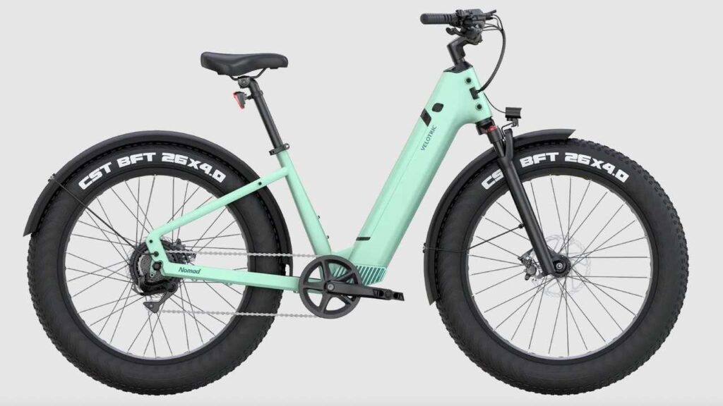 You can get the bike in two frame designs—a high-step and a step-thru version,—with four colors available for each of them. This allows riders of all shapes and sizes to easily and confidently swing a leg over this thing and go for a ride. The Nomad 1’s slack frame offers a relaxed, straight-back riding position, with comfort being boosted by a cushy seat and a front suspension fork with 80 millimeters of travel. It also has hydraulic disc brakes and integrated LED lights. The most defining feature is its 26 x 4-inch fat tires, enabling it to tackle all sorts of terrain.