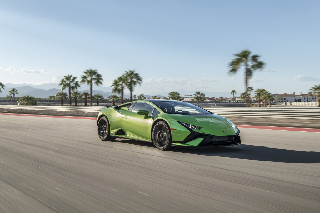 The South Palm circuit has a few corners that reveal the Huracán Tecnica’s handling character, which varies by mode and is highly influenced by the rear-wheel-drive layout and standard rear-axle steering.