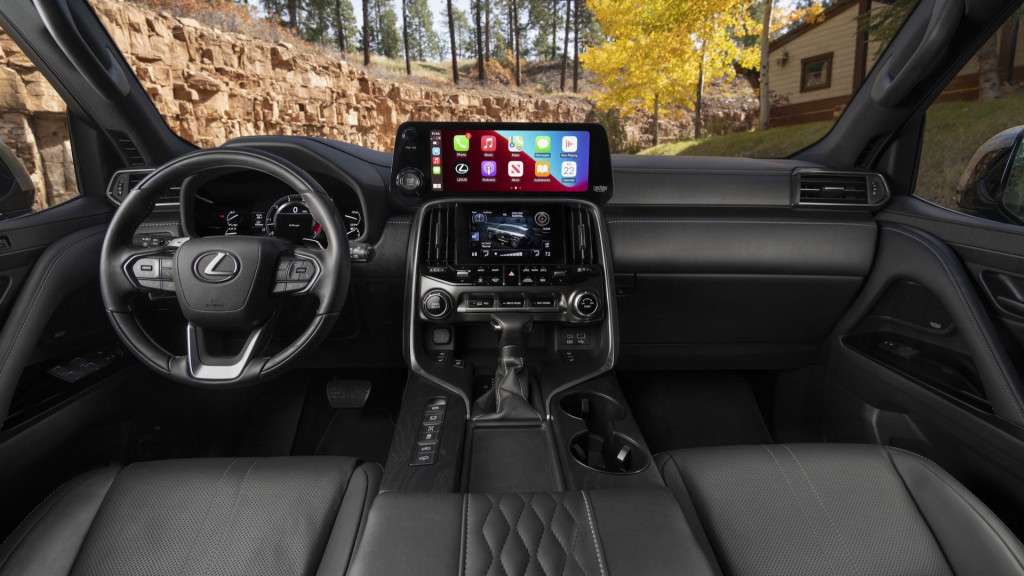 A dual-screen setup with a 12.3-inch upper screen and 7.0-inch lower screen remains standard. The LX uses the same Lexus Interface infotainment system as the automaker’s other recent models, with standard wireless Apple CarPlay and Android Auto smartphone connectivity.
