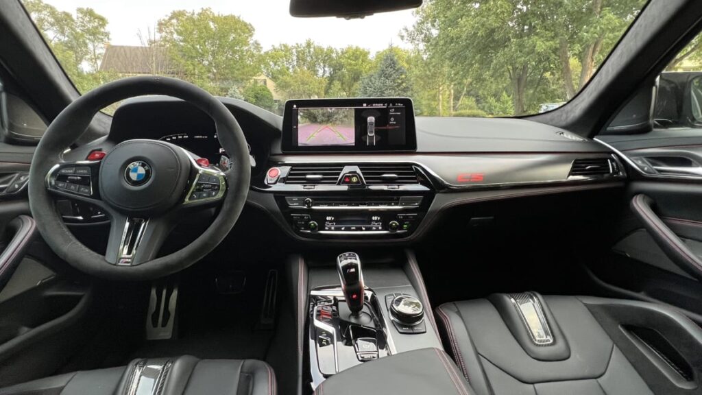 Those rear buckets mean, however, that you’re limited to no more than four occupants. If you’ve got a family of five, you have to consider how often you plan to use your 627-horsepower performance sedan as a daily driver for full-family school runs or road trips. If ever, that means you’ll have to settle for a lesser 5 Series, like the M5 Competition and its mere 617 horsepower, to get five seats. The CS’s bucket seats can still easily accommodate car seats, though, which was a pleasant surprise.