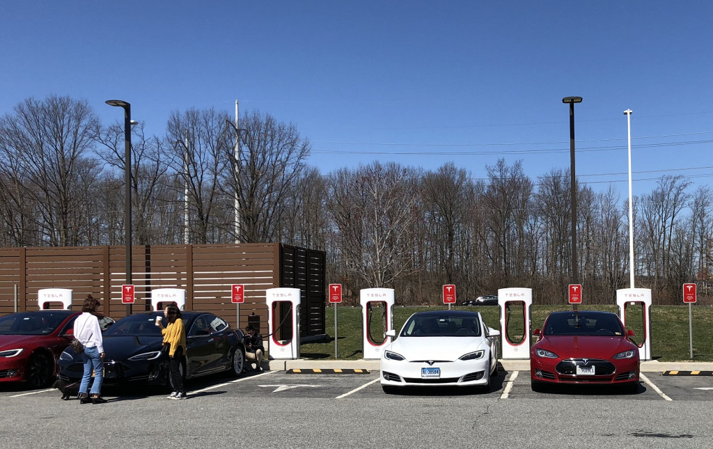 Tesla electric cars at Supercharger fast-charging site, TK [photo: Jay Lucas]