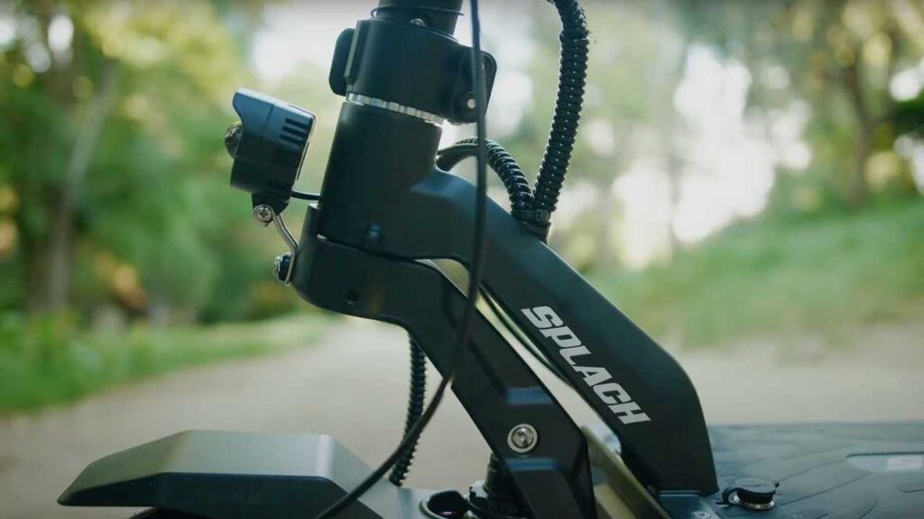 To back up this hefty claim, the Titan packs a wide deck measuring 22 centimeters across and 53.3 centimeters long, to provide you with a confident stance when riding through uneven surfaces. Furthermore, the scooter packs a full suspension system and nine-inch all-terrain tires. Thanks to all these beefy features, the Titan boasts impressive ground clearance, and looks like it’s ready to be ridden down a curb, and on some light gravel trails. Splach has also thrown in a bunch of LED lights, including a few on the sides of the scooter which can be color-customized to your preferences via a mobile app.