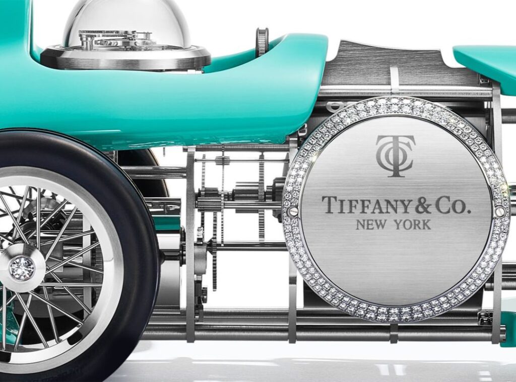 On the left side of the open-cockpit car is where collectors can decipher the time of day or night, using a brushed stainless steel aperture that displays the hours and minutes. Taking the driver seat as the engine powers the grand complication, Tiffany & Co. encases a glass dome over the intricate movement that drives the clock. The time is set by rotating the three-spoke steering wheel counterclockwise, and the caliber is wound by pulling the car back on a flat surface. Tiffany & Co. adds a bold “5” on the bumper as a nod to the brand’s flagship store address on Fifth Avenue in NYC. The all-new Tiffany & Co. Race Car Clock is currently available through an authorized dealer for $215,000. Check back into duPont REGISTRY for more upcoming luxury watch news and releases.