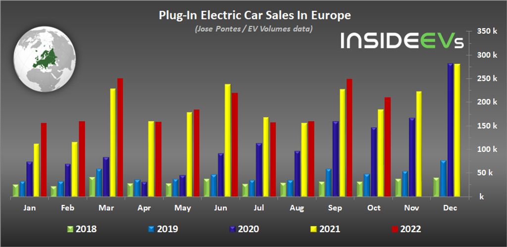 For reference, in the 12 months of 2021, some 2.27 million plug-in cars were sold in Europe at an average market share of 19% (including 10% for BEVs).