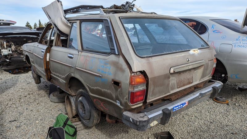 1977 was one of the years of Peak Wagon in the United States, a year in which car shoppers here could choose among 47 different models of station wagon (the wagon count for 1964 was 47 as well). The choices were slightly diminished in 1978, but we were still in the Golden Age of Japanese station wagons here at that time. Toyota offered Americans three wagon choices for ’78 (Cressida, Corona, Corolla) and Nissan was right there with the Datsun 810, 510 and F-10. Here’s one of those all-but-extinct 510 wagons, found in a self-service yard near Sacramento, California.