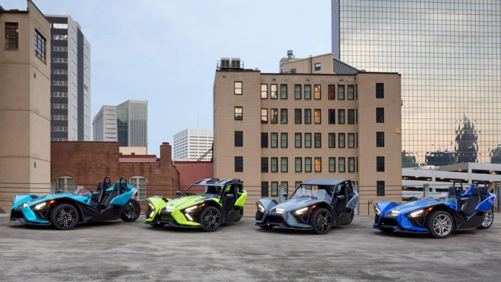 Prices are up about $700. MSRPs for the 2023 Slingshot range in manual and automated manual gearboxes (M / AM) that Polaris calls AutoDrive fitment are below. Add $300 to the prices shown for the California MSRP.