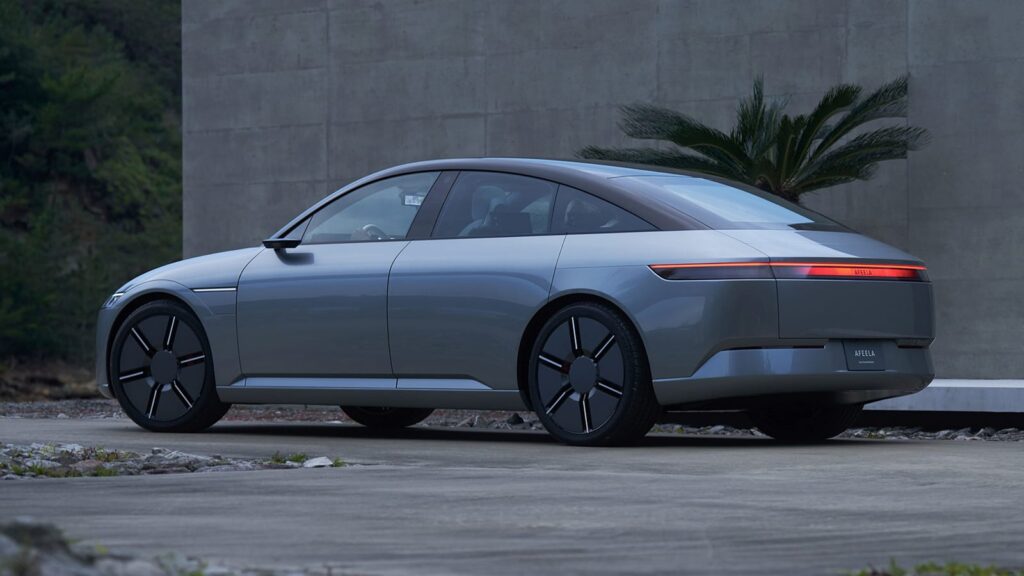 The interior is about as minimalist as the exterior, but with the ever-more popular full-width bank of screens, including ones for the side mirrors. The rear seats have individual screens, too. Sony touts an emphasis on offering all kinds of entertainment for passengers. It didn’t mention anything about installing a PlayStation in the car, but it did mention that it’s partnering with Epic Games on developing entertainment options.