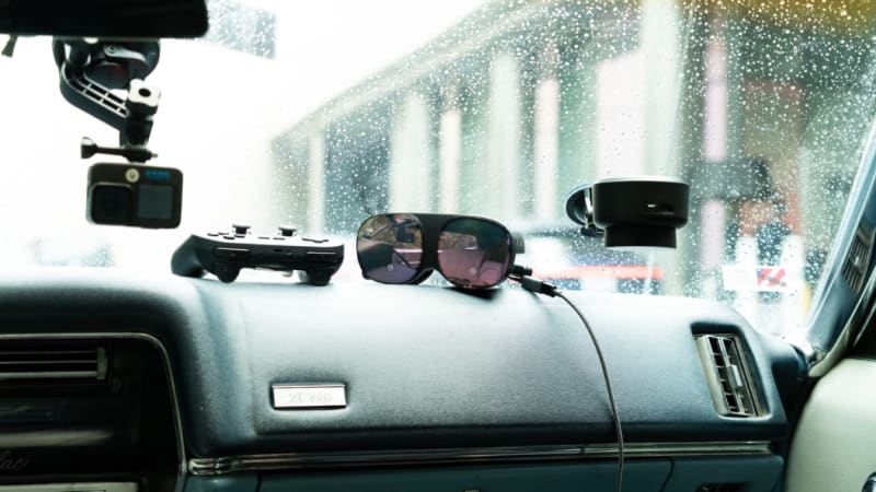This wasn’t just any car, though, and it wasn’t just any VR system. The car was a 1967 Cadillac DeVille, remarkable in so many ways but, in this context, notable for its abject lack of technology. (Worryingly, it also lacked seatbelts, thankfully not needed on this day.) The headset was an HTC VIVE Flow, paired with a Holoride’s new retrofit kit, a $199 add-on that allows you to get in-car VR experiences in literally any car.