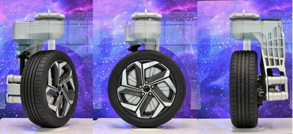 Making this possible are modules that incorporate the hardware needed to rotate the wheels at different angles. Hyundai Mobis appears to have skipped the idea of in-wheel motors, however, perhaps keeping the motor together with the module but not part of the actual wheel’s unsprung weight. That added unsprung weight can make tuning for ride quality and handling difficult.