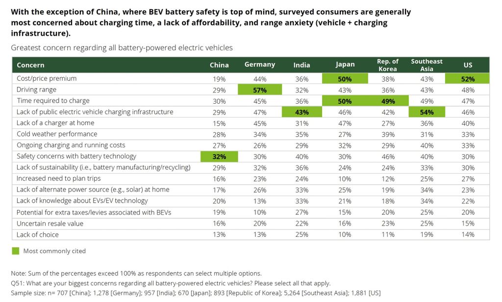 The appetite for EVs is significantly higher in other markets compared to the US, though. For example, 16 percent of Germans surveyed said they want an EV, 17 percent of South Koreans, and 27 percent of Chinese.