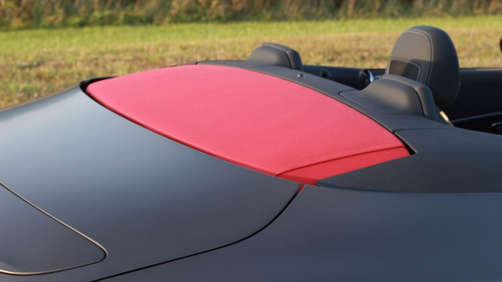 The only miss with this screen setup is that it’s involved with the top operation. A hard button on the console brings up a screen that allows you to swipe back and forth, then hold your finger there on the screen to put the top up or down — it takes 15 seconds. On a couple occasions, it was simply unresponsive to our commands, which is as concerning as it sounds. However, you can also operate the top by holding the hard button that brings up the menu. It’s a little clunky, as the same button is then used to put the top both up and down. At least a backup for the screen exists but that just speaks to how needlessly complicated it is.