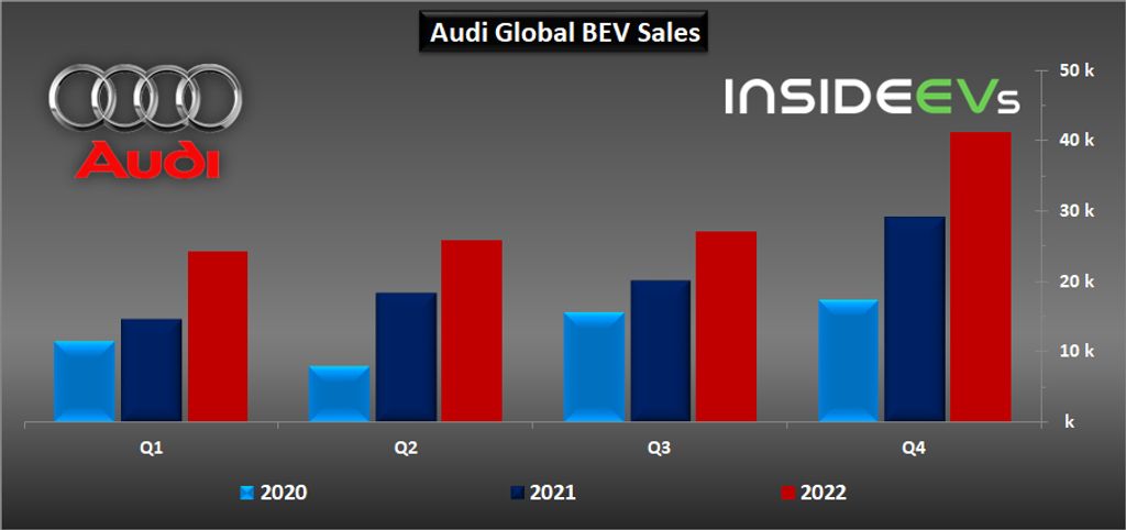 The total number includes 16,217 Audi BEVs, sold in 2022 in the United States.