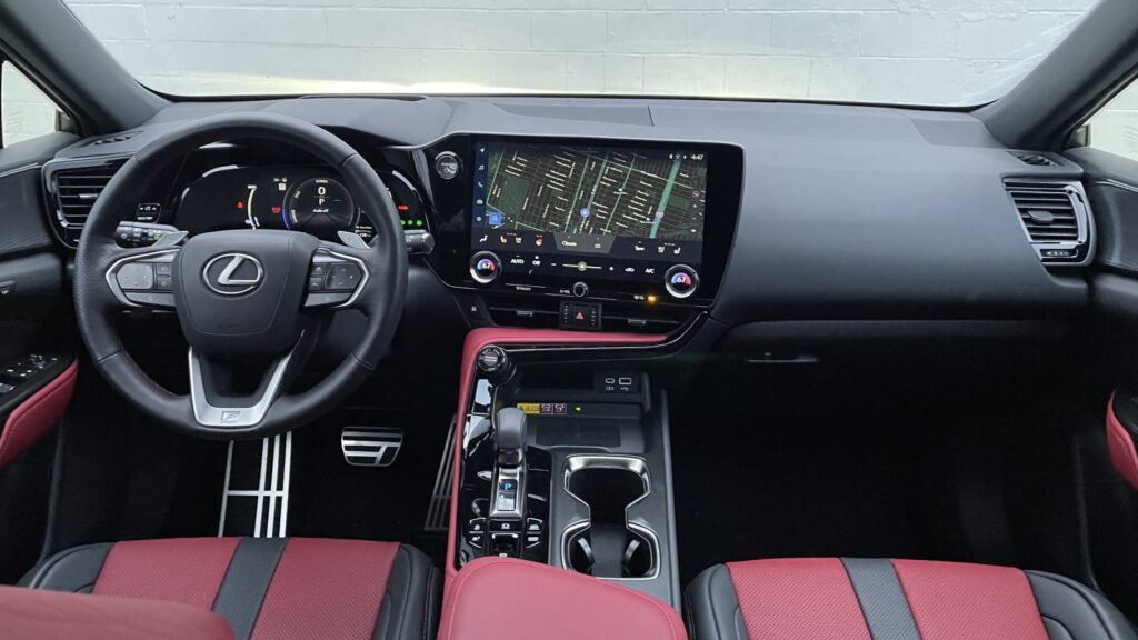 While the redesigned cabin helps the otherwise-identical-looking NX from coming off as completely stale, the biggest upgrades are technological, not aesthetic. The new infotainment system is powered by a standard 9.8-inch screen with dedicated physical climate control toggles or an optional 14-inch unit that incorporates a dedicated blend of touch-sensitive and physical comfort controls blended into the screen’s lower bezel. No matter which you choose, you get a physical volume knob. This represents a vast improvement over that found in the previous NX (and basically every other Lexus) but lacks split-screen functionality and some other basic items, like a dedicated home screen. Going between the native Lexus functions like radio or navigation, and the standard wireless Apple CarPlay/Android Auto connectivity screens is a constant source of tap-tap-tapping frustration.