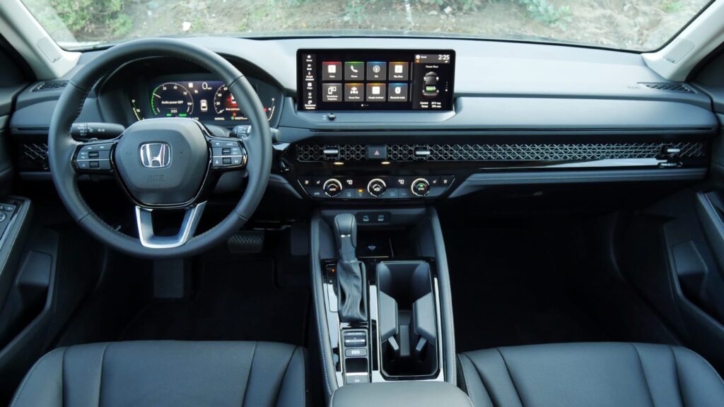 The most substantive change comes under the hood. The old 2.0-liter turbo engine upgrade is toast, the victim of limited interest, much like the old six-speed manual option. The 1.5-liter turbo carries over with the same output of 192 horsepower and 192 pound-feet of torque, but has been tweaked for better refinement, noise levels and efficiency. It’s also only available on the lowest LX and EX trim levels. Much like the 2023 Honda CR-V, all other trim levels, including the Sport ones, are hybrids. Honda expects the 1.5/hybrid sales mix to be 50/50, though we could easily see that proportion tilting in favor of the Accords packing batteries.