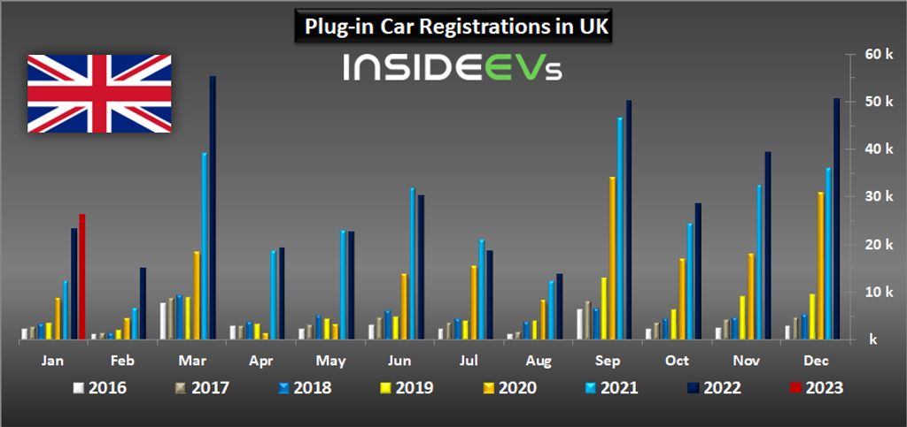 For reference, in 12 months of 2022, more than 368,000 new passenger plug-in cars were registered in the UK, reaching an average market share of 22.8%.