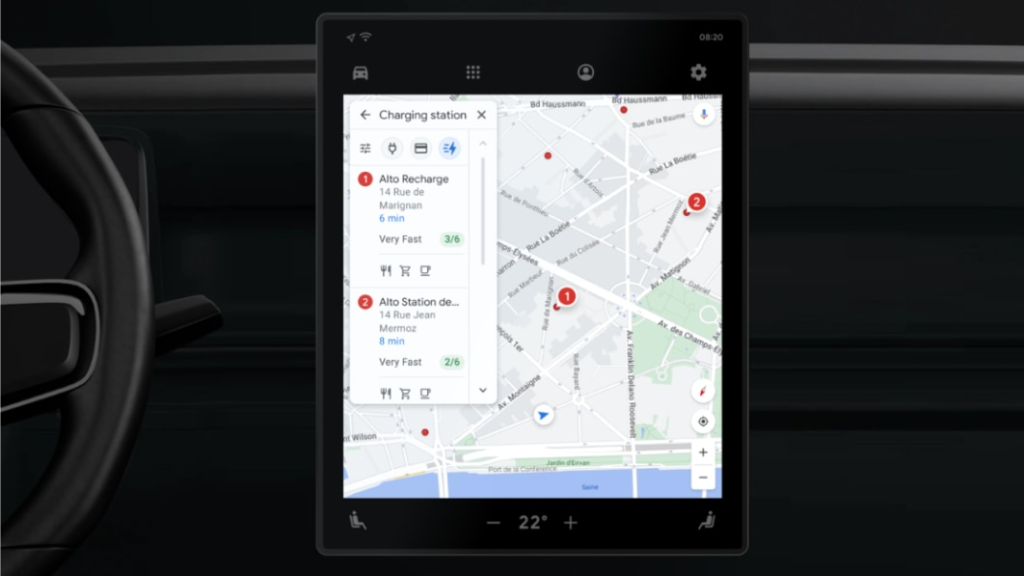 Drivers using Maps on their car’s display screen will be able to easily find nearby charging stations that have chargers of 150 kilowatts or higher capacity for a faster charge. Additionally, for any trip that requires a stop to charge an EV, Maps will suggest the best stop based on factors like the current traffic, the EV’s charge level and how much energy it expects the EV to consume.