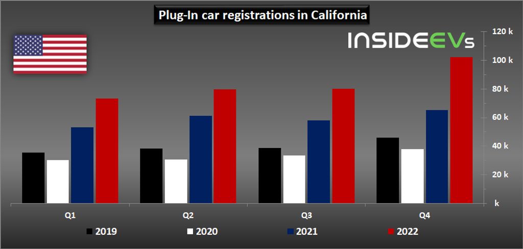 In Q4, some 102,279 plug-in electric cars were registered (56 percent more than a year ago), which is not only a new quarterly record but also the first six-digit result.