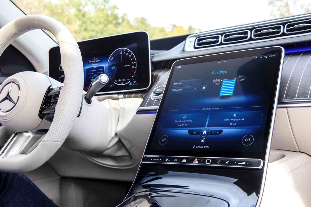 The S 580e’s powertrain consists of a 3.0-liter turbocharged inline-6 combined with a single electric motor, and its drive goes to all four wheels. Combined output is a healthy 510 hp, or enough for 0-60 mph acceleration in 5.1 seconds and a governed top speed of 155 mph. The same powertrain features in a Maybach S 580e that will be offered overseas.