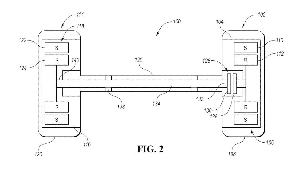 Clutches would control the distribution of torque, enabling 100% of the torque from one motor to be sent to the other on a given axle if only a single wheel has traction, Ford said in the application, adding that “this may be particularly useful when one wheel is off the ground such as during rock crawling.” It’s also possible to slip both clutches on a given axle, according to the application.
