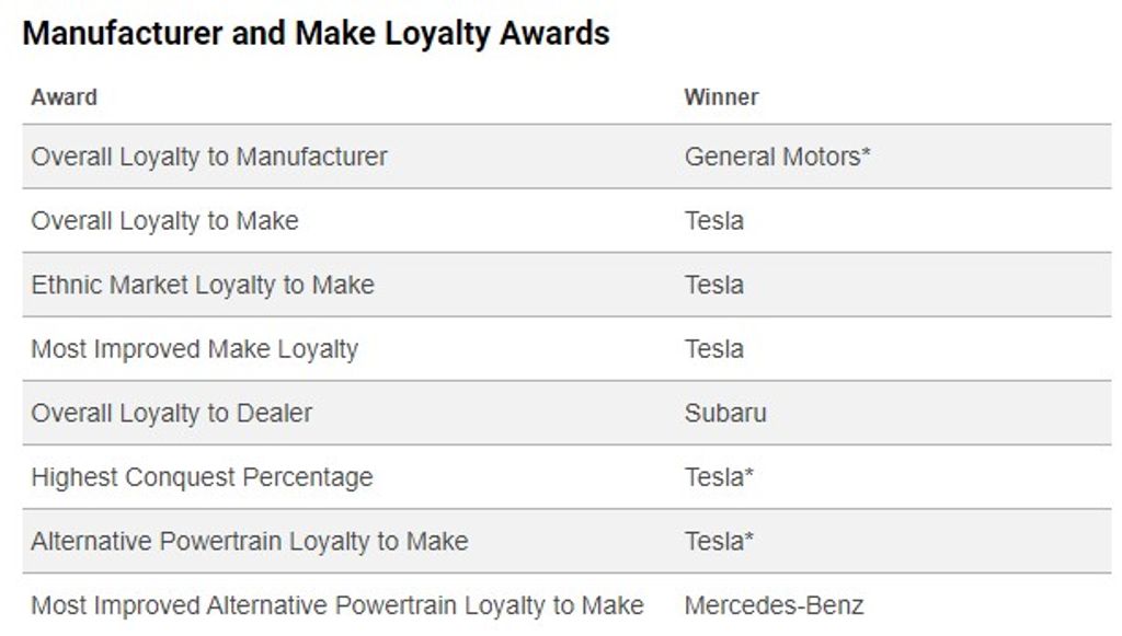 According to S&P Global Mobility via Automotive News, Tesla and General Motors were both big winners in the 2022 Automotive Loyalty Awards. Tesla topped Ford for the first time in US brand loyalty by “Make.” Meanwhile, GM took the top honor for manufacturer loyalty.
