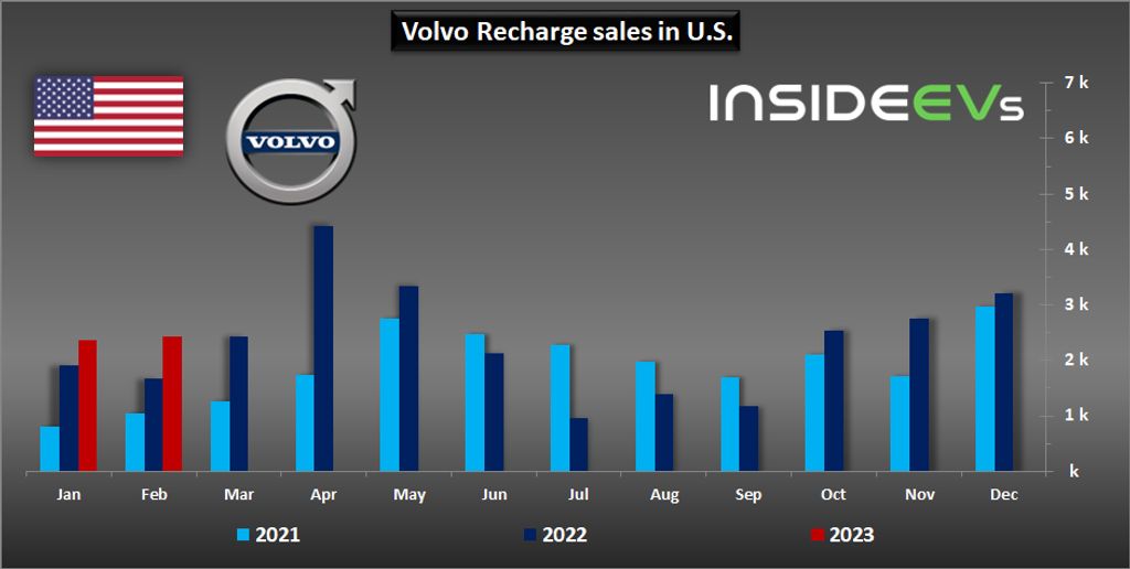 In February, Volvo sold 2,436 plug-ins, which is 45 percent more than a year ago and 28.5 percent of the total volume.