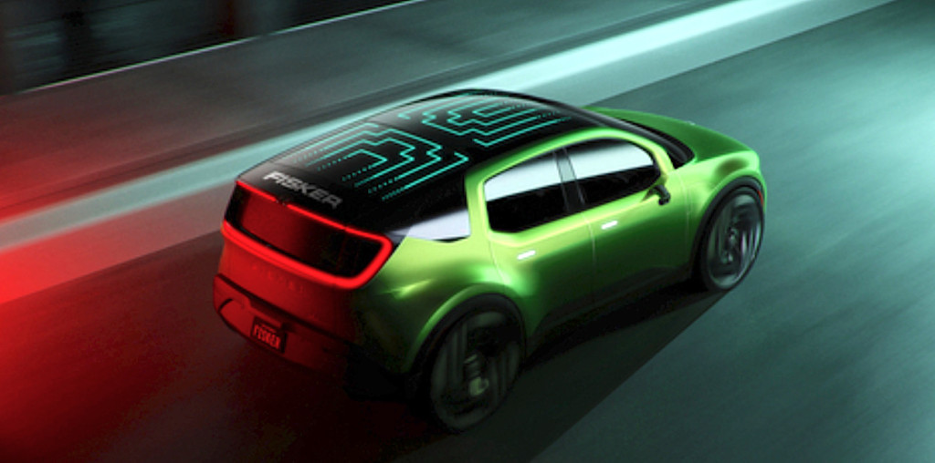Fisker has added more detail, saying that the vehicle sits higher off the ground with a raised seating position. It also has pronounced fenders “giving the vehicle a powerful, wide stance,” according to Fisker. A continuous light strip frames the rear window, and front lights emphasize dual light bars that appears to carry a continuous family identity with the larger Ocean.