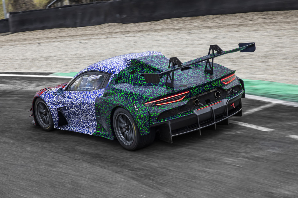 Other areas specific to the race car include the suspension components (adjustable dampers and adjustable anti-roll bars), 6-speed sequential transmission, quick-release steering wheel, and 10-inch driver information display.
