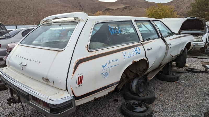 For the 1964 through 1972 model years, GM’s Buick and Oldsmobile Divisions produced midsize station wagons with amazing fighter-jet-style roof windows. The Buick version was Skylark-based and badged as the Sportwagon, while Oldsmobile used a stretched Cutlass chassis as the basis for the Vista-Cruiser. For 1973, the Vista-Cruiser got the same wheelbase as its sedan si, while the “Skyroof” went away. Starting in 1974 and continuing through 1976, Oldsmobile introduced a slightly cheaper version of the Vista-Cruiser (yes, there’s a dash in the model name, as seen in GM marketing materials, though not on vehicle emblems) and called it the Cutlass Supreme Cruiser. That’s what we’ve got for today’s Junkyard Gem, a ’75 found in a self-service yard while I was range-testing a Kia EV6 near Reno, Nevada.