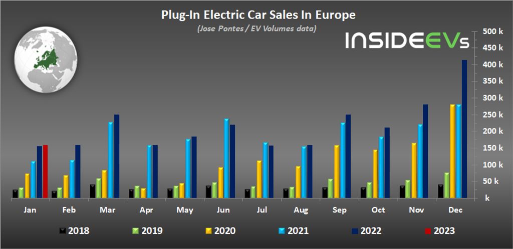 According to EV Volumes data, shared by Jose Pontes, some 158,727 new passenger plug-in cars were registered in Europe in January (up 3 percent year-over-year). That’s a positive outcome, but the growth rate was lower than in the case of the general market.
