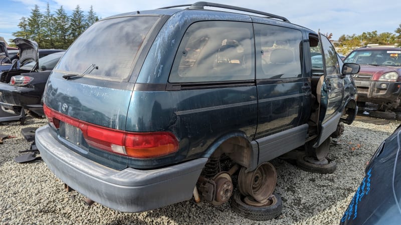 Toyota did passably well selling its Van (the model name it applied to the MasterAce Surf in North America, following the precedent of selling the Hilux pickup as the Truck) here during the 1980s, and the decision was made to follow it up with an Americanized version of the Toyota Estima van. This was the Previa, a family-hauling machine that looked odd but packed a lot of interesting hardware under its egg-shaped body. Here’s a mid-production Previa with a supercharged engine and the All-Trac AWD system, found in a Northern California self-service junkyard a few months ago.